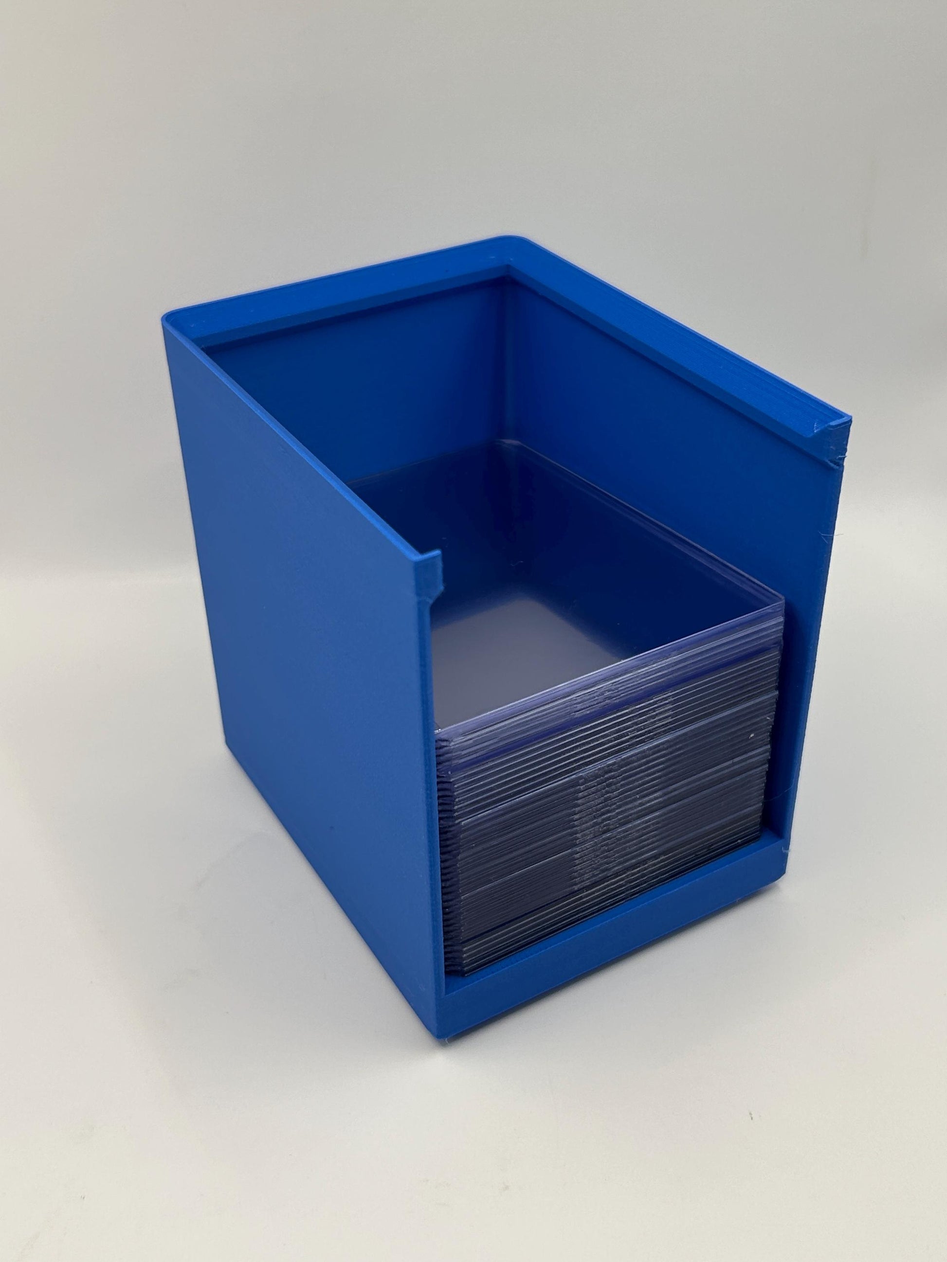These 3D printed trays are perfect for holding a stack of 50 Top Loaders and 100 sleeves! The trays can also be purchased individually to customize your set up and make sleeving cards and deck a breeze.