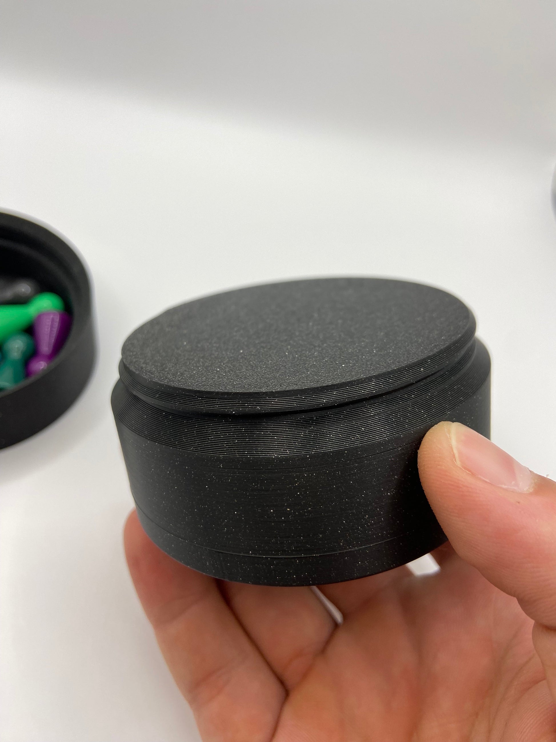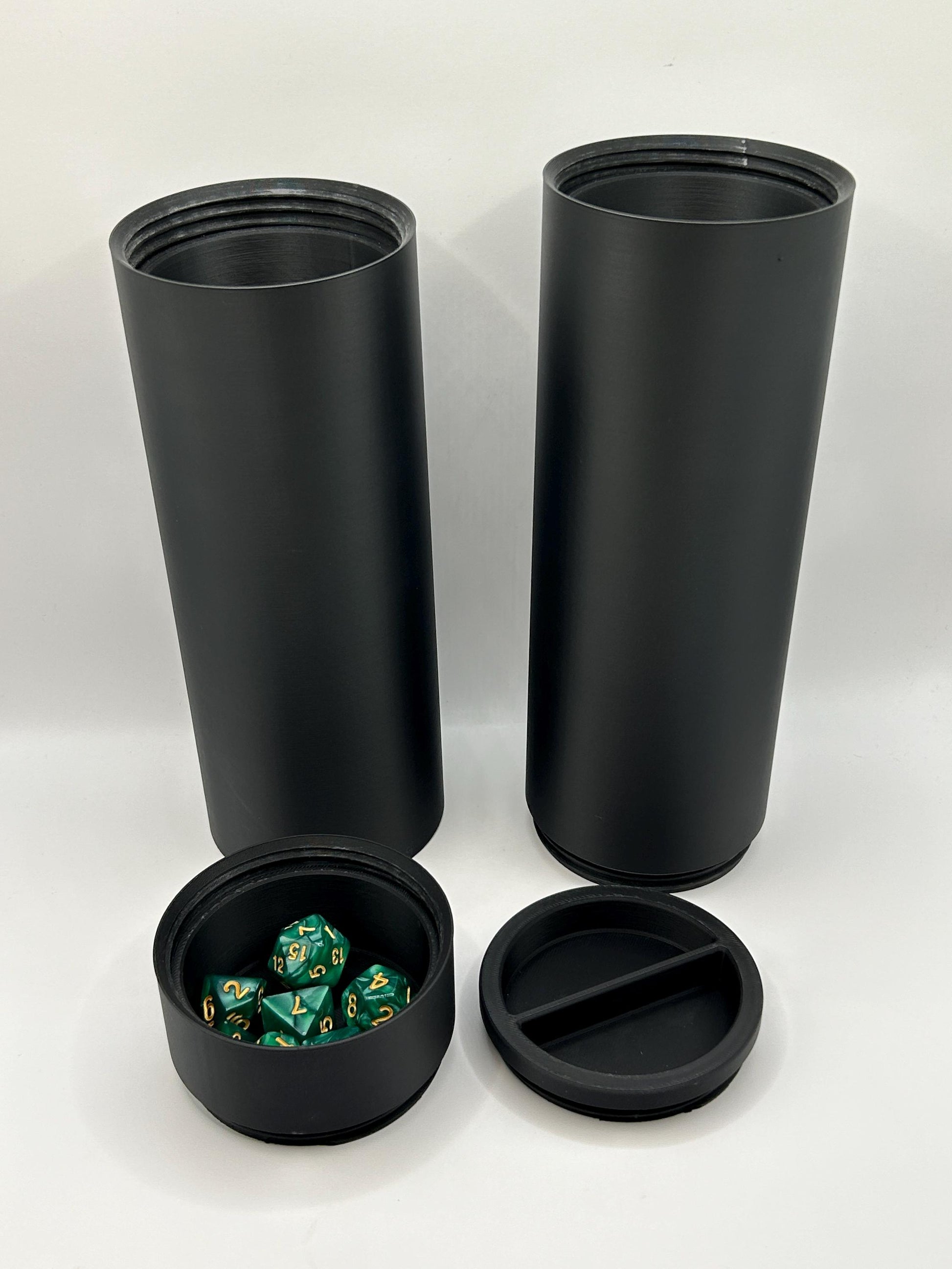This threaded container is perfect for storing and traveling with a playmat for any table top game. It is designed to hold a playmat of max size 24.5" by 14.5". The best part is it is compatible with the threaded game piece container as well. This means that you can stack storage containers on top of the tube to hold dice, figures, token, or anything else you need!