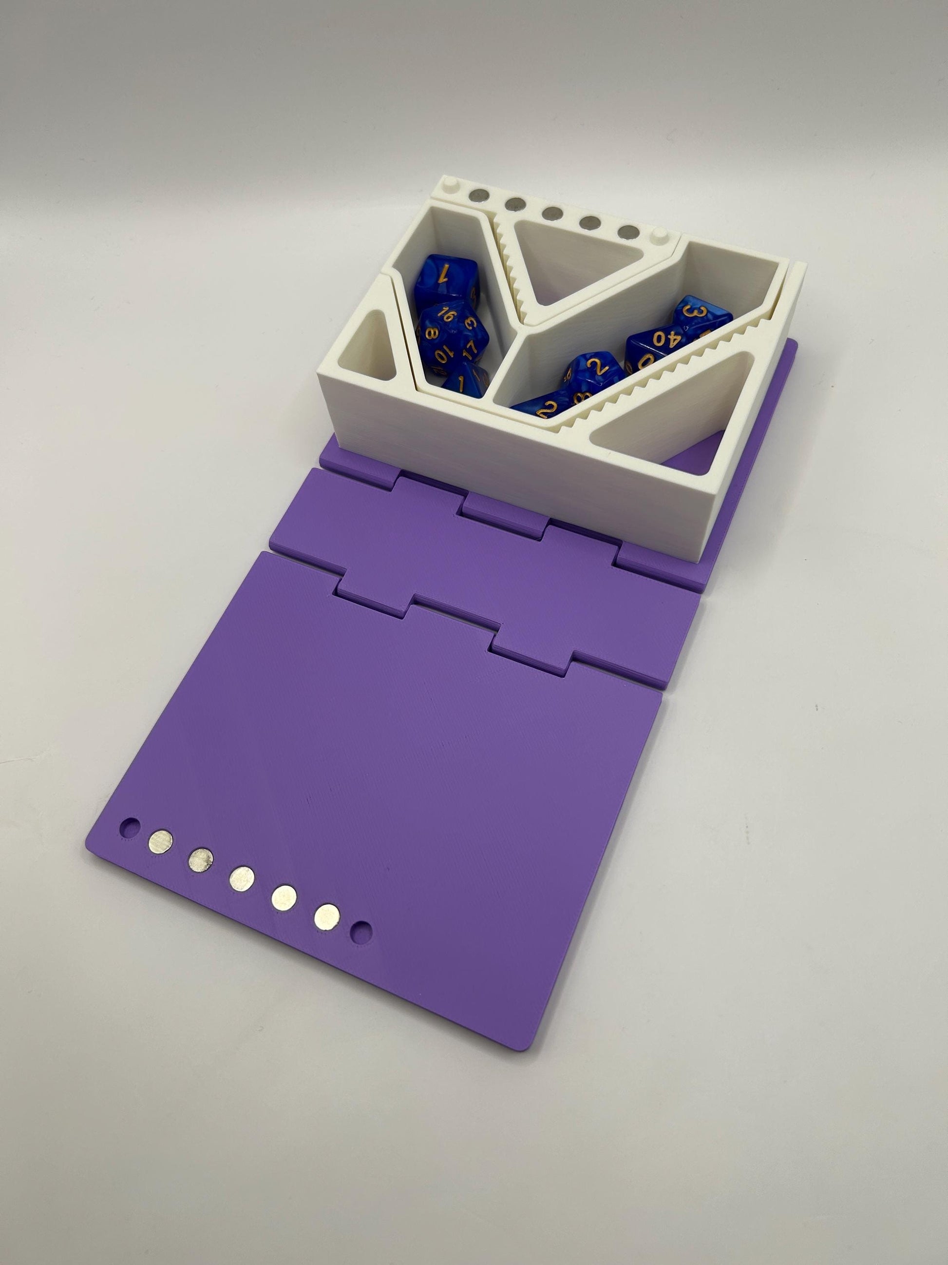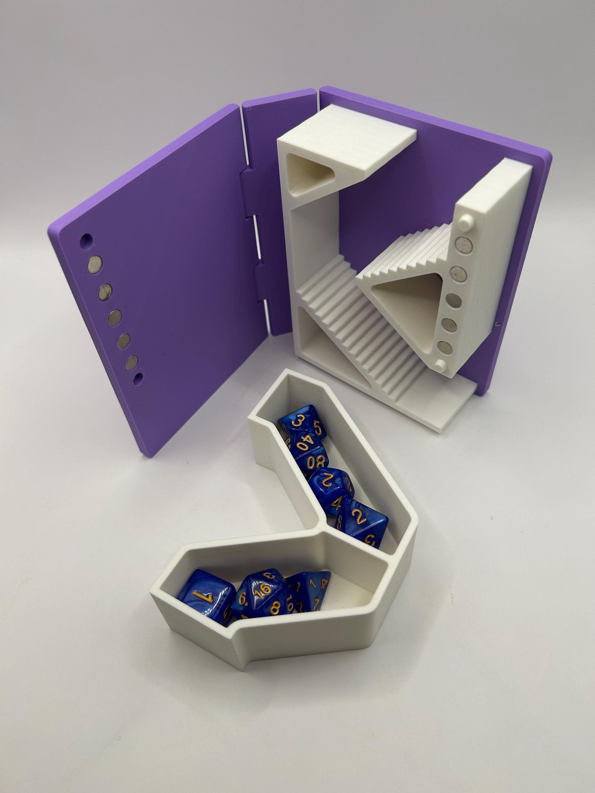 This 3D printed dice tower and box is the perfect sidekick for any role playing game. It makes it easy to store, transport, and have your dice at the ready.