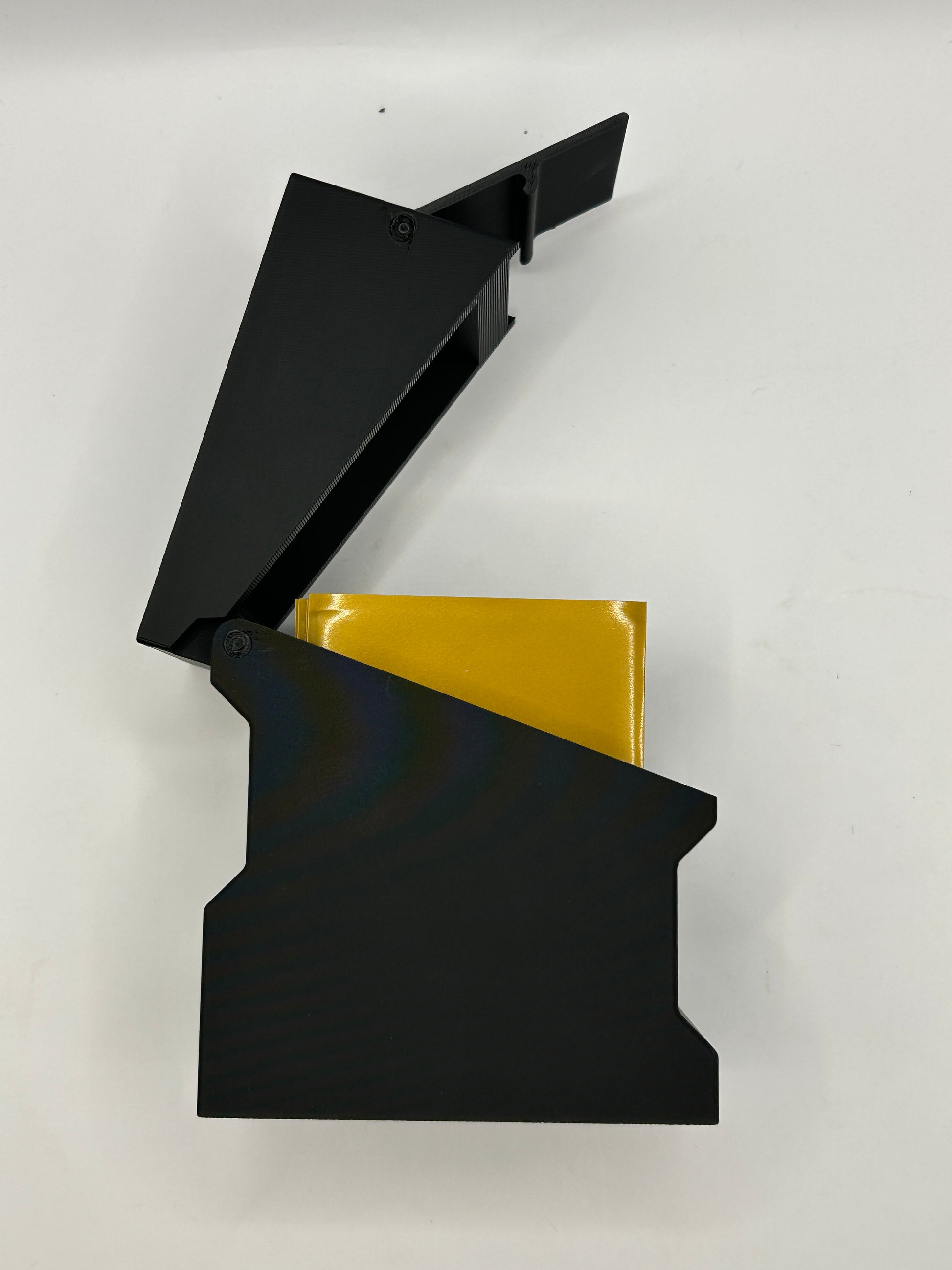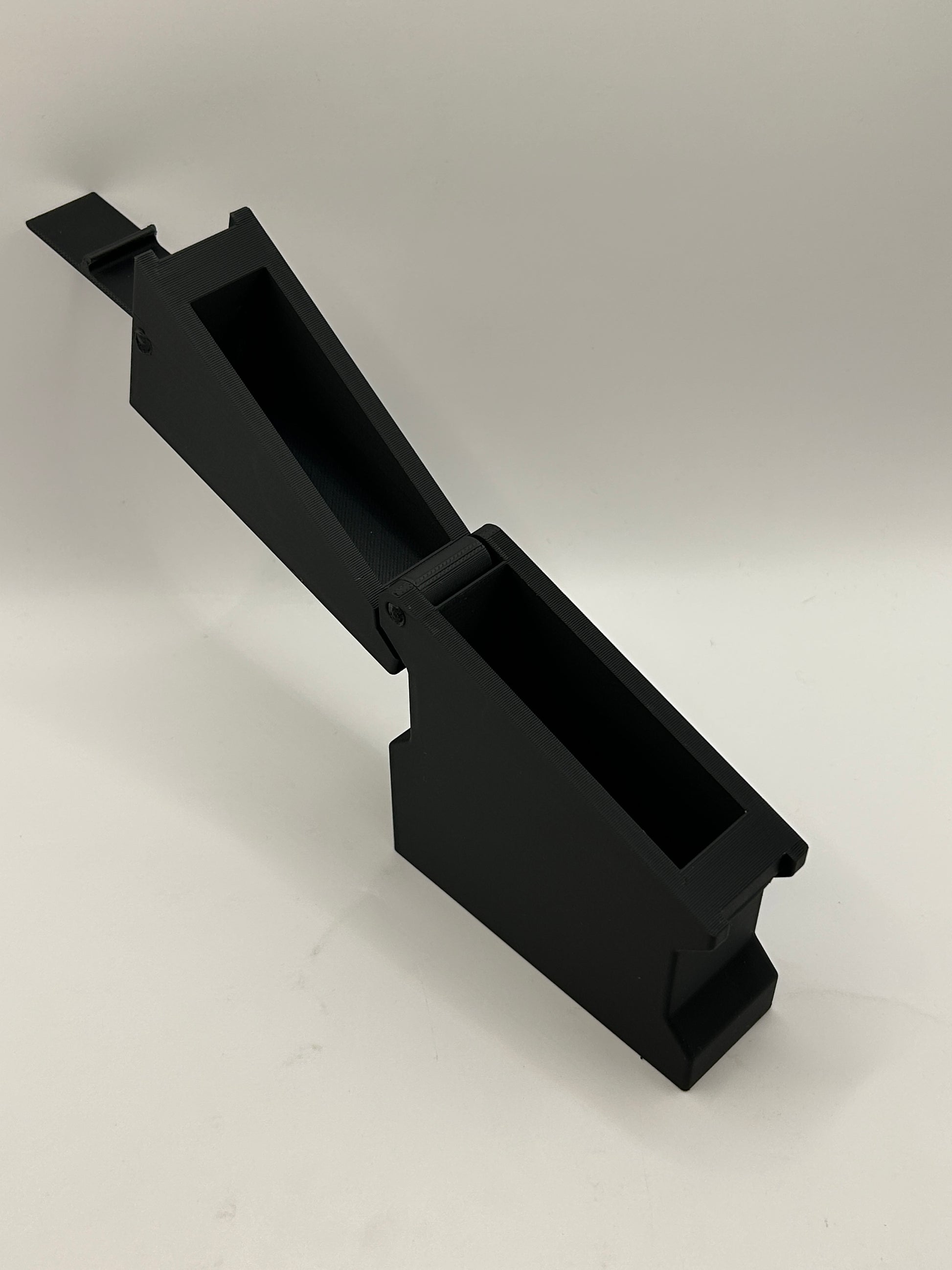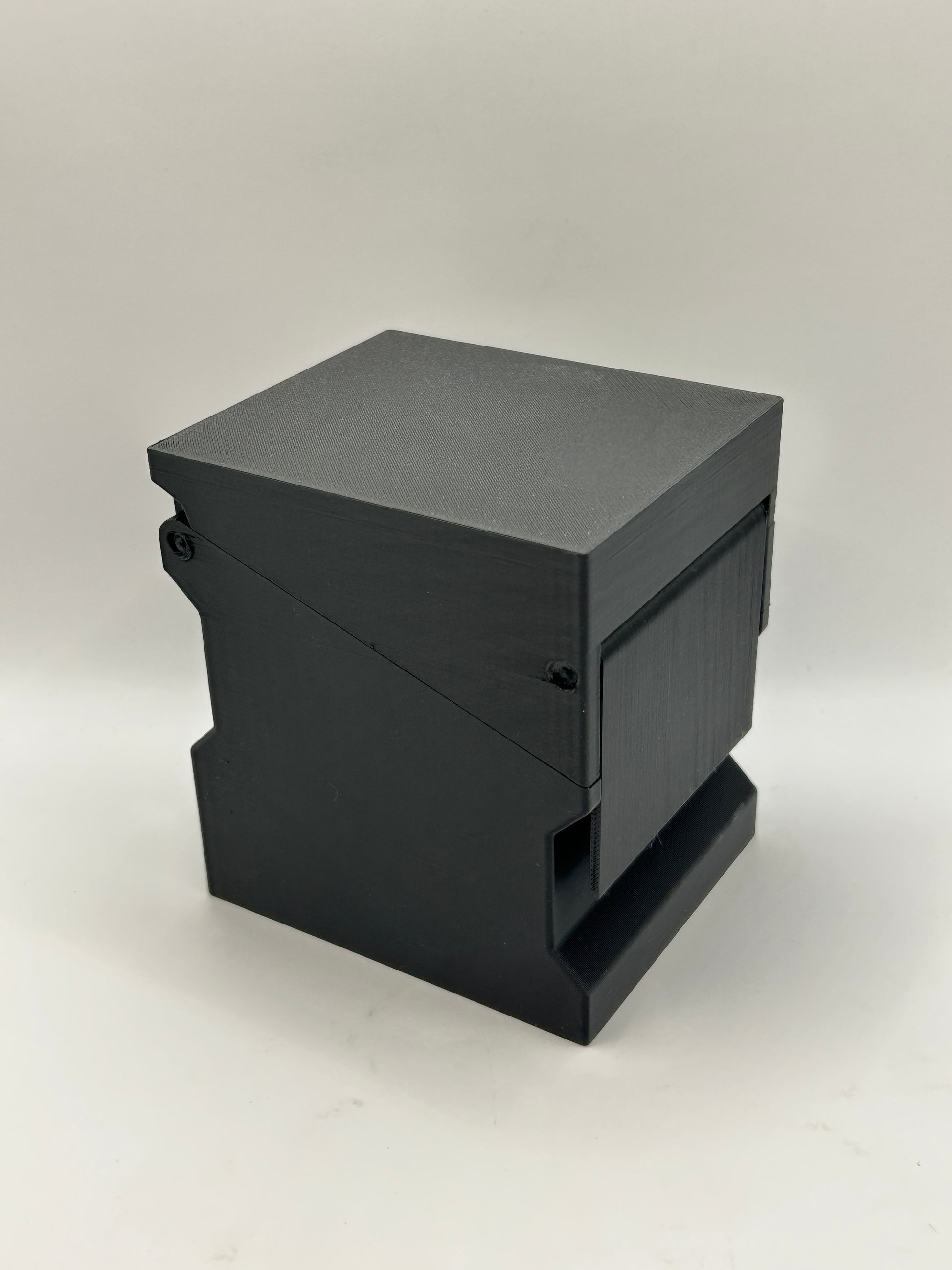 This is your straight forward but sleek looking deck box for storing standard sized cards and sleeved cards. It comes in different sizes depending on the number of cards being stored. It serves as a quick and easy way to store cards safely and was designed to not rely on magnets. It uses hinges and a strong latch to keep the contents secure during travel!
