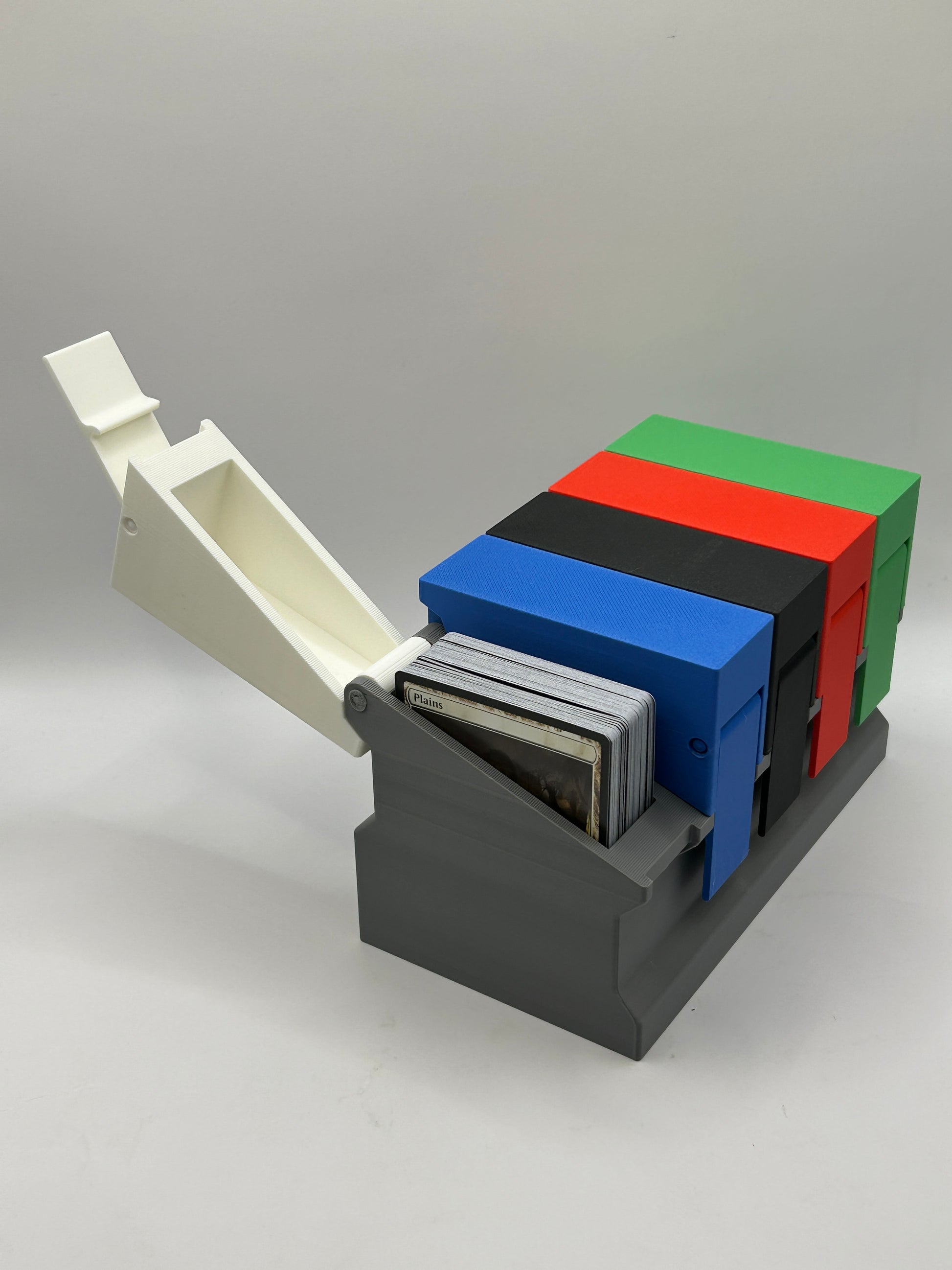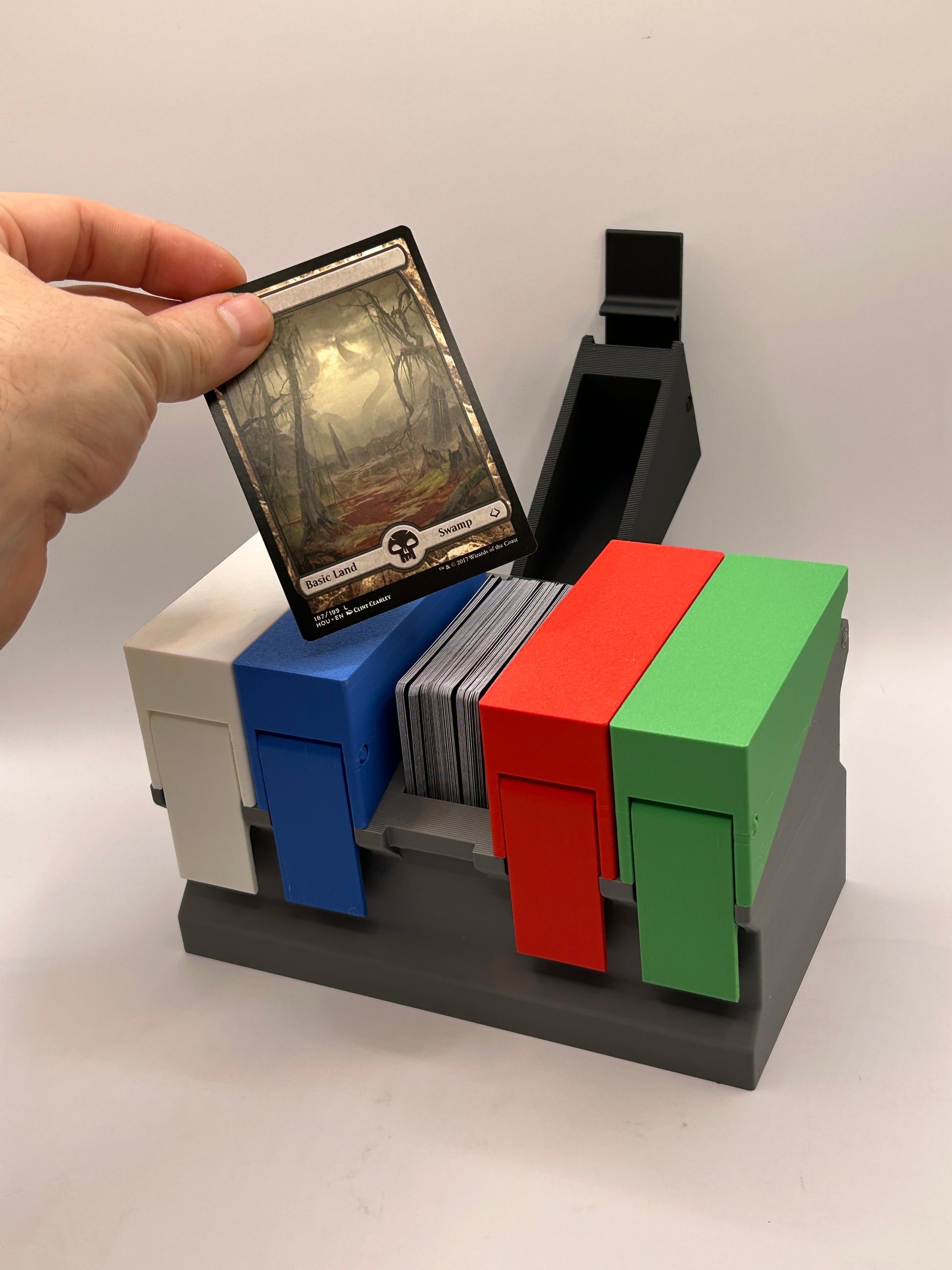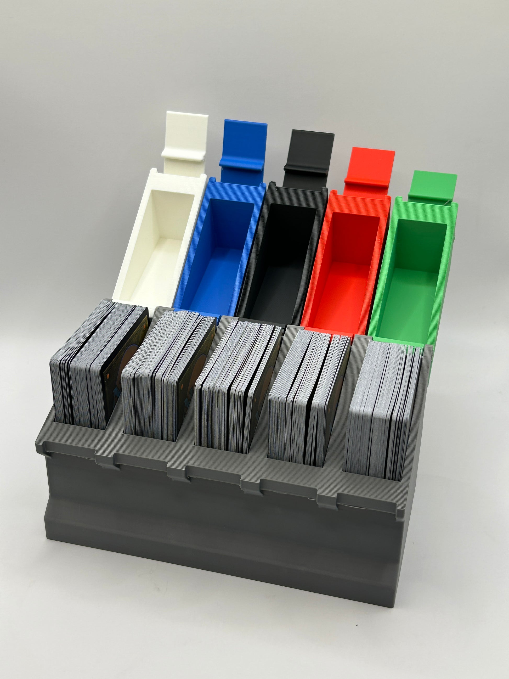 This is the perfect land station for on the go or in your game room! It serves as a quick and easy way to store cards safely and was designed to not rely on magnets. It uses hinges and a strong latch to keep the contents secure during travel!