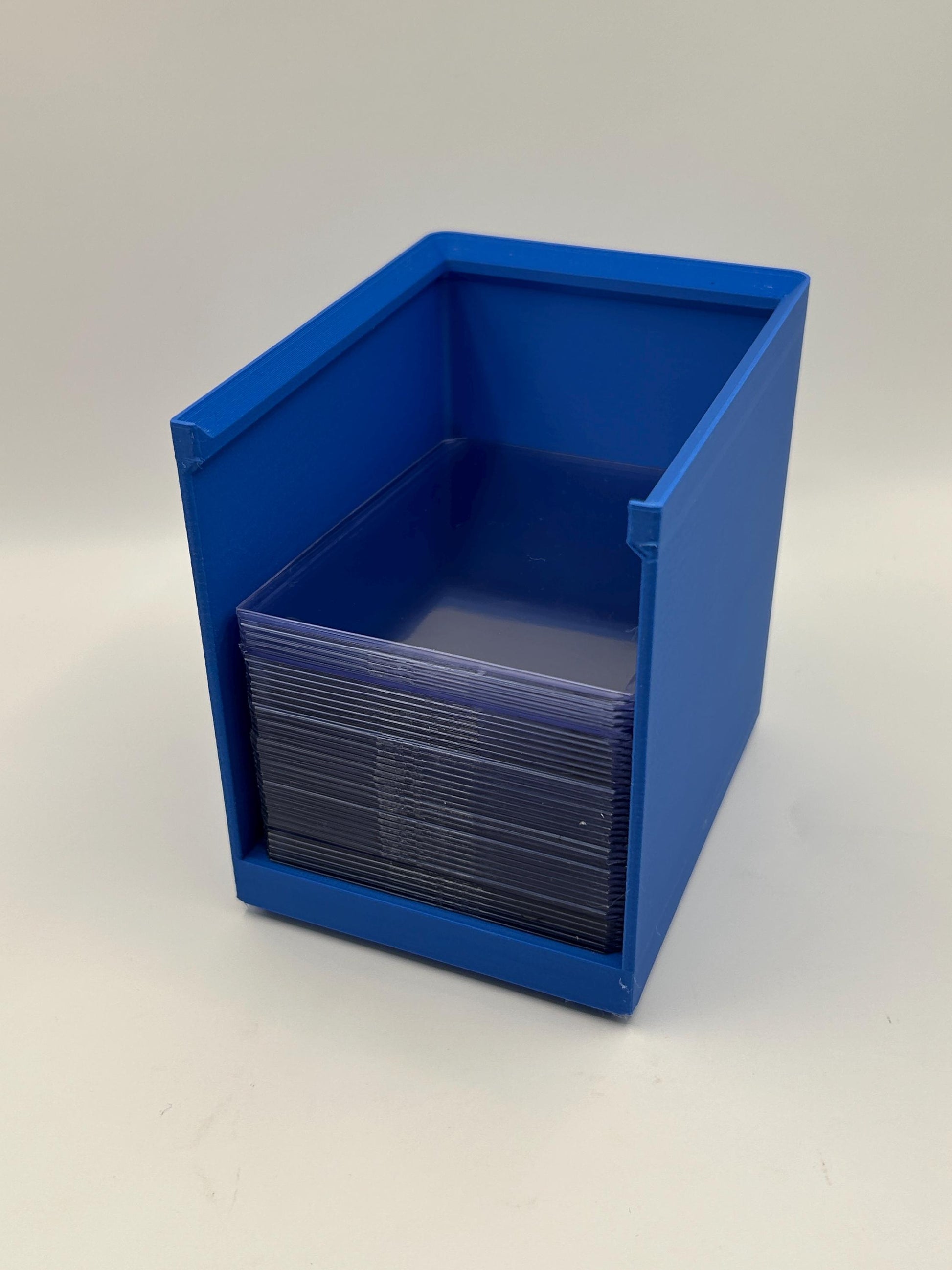 This 3D printed tray is perfect for holding a stack of 50 Top Loaders! These trays stack so you can buy multiple or get the sleeves version as well for the perfect pack opening kit.